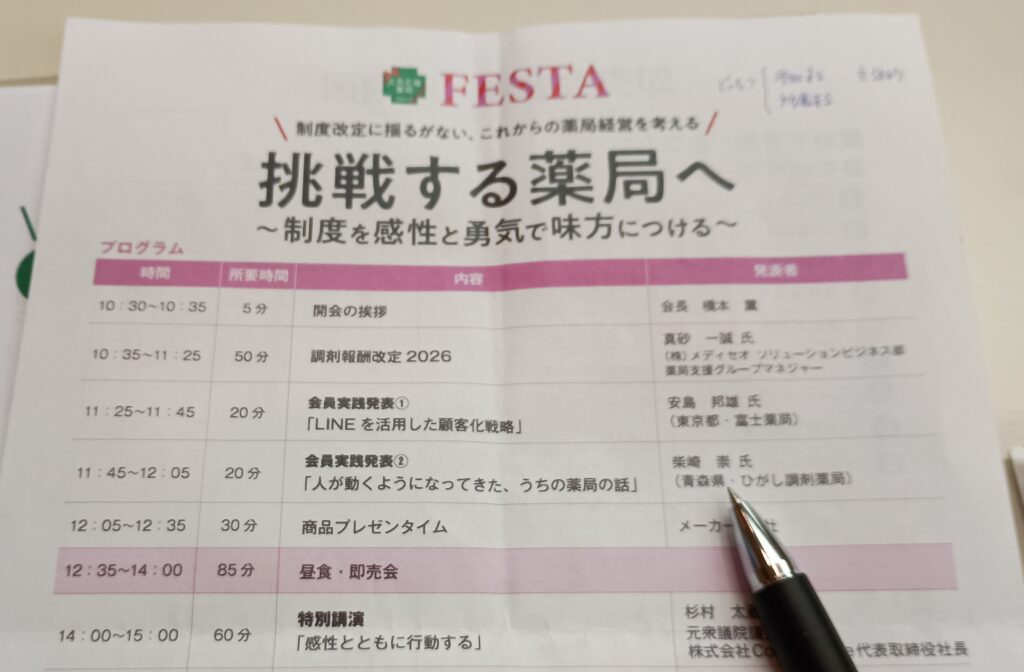 3月15日(日)に東京都渋谷で開催されたclass A フェスタ2026に2名参加致しました。 「挑戦する薬局へ~制度を感性と勇気で味方につける~」のタイトルのとおり、このあとに控える調剤報酬改定へ向けて、 挑戦する勇気と必要な感性を磨...